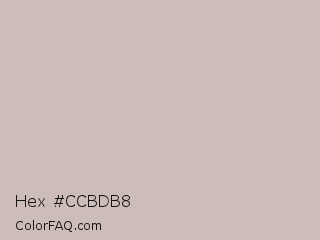 Hex #ccbdb8 Color is a light color and the nearest color is Cold Turkey #cebaba. Hex code #ccbdb8 and RGB value is rgb(204,189,184). In RGB color space, this color is composed of 80% red, 74% green, 72% blue, In CMYK color space, this color is composed of 0% cyan, 7% magenta, 10% yellow , 20% black , In HSL color space, this color has a hue angle of 15° , 16% saturation and 76% lightness.
