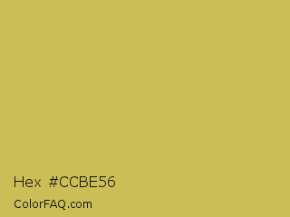 Hex #ccbe56 Color is a normal yellow color and the nearest color is Sundance #c9b35b. Hex code #ccbe56 and RGB value is rgb(204,190,86). In RGB color space, this color is composed of 80% red, 75% green, 34% blue, In CMYK color space, this color is composed of 0% cyan, 7% magenta, 58% yellow , 20% black , In HSL color space, this color has a hue angle of 53° , 54% saturation and 57% lightness.