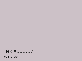 Hex #ccc1c7 Color is a light magenta color and the nearest color is Cloud #c7c4bf. Hex code #ccc1c7 and RGB value is rgb(204,193,199). In RGB color space, this color is composed of 80% red, 76% green, 78% blue, In CMYK color space, this color is composed of 0% cyan, 5% magenta, 2% yellow , 20% black , In HSL color space, this color has a hue angle of 327° , 10% saturation and 78% lightness.
