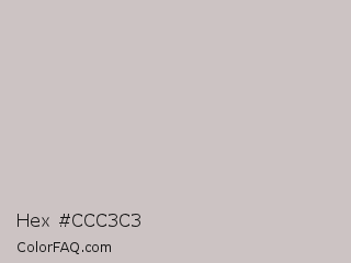 Hex #ccc3c3 Color is a light red color and the nearest color is Cloud #c7c4bf. Hex code #ccc3c3 and RGB value is rgb(204,195,195). In RGB color space, this color is composed of 80% red, 76% green, 76% blue, In CMYK color space, this color is composed of 0% cyan, 4% magenta, 4% yellow , 20% black , In HSL color space, this color has a hue angle of 0° , 8% saturation and 78% lightness.