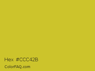 Hex #ccc42b Color is a normal yellow color and the nearest color is Key Lime Pie #bfc921. Hex code #ccc42b and RGB value is rgb(204,196,43). In RGB color space, this color is composed of 80% red, 77% green, 17% blue, In CMYK color space, this color is composed of 0% cyan, 4% magenta, 79% yellow , 20% black , In HSL color space, this color has a hue angle of 57° , 65% saturation and 48% lightness.