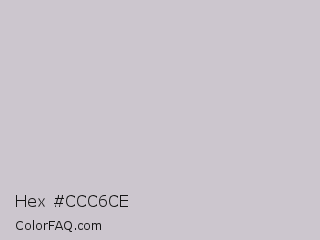 Hex #ccc6ce Color is a light purple color and the nearest color is Lavender Gray #c4c3d0. Hex code #ccc6ce and RGB value is rgb(204,198,206). In RGB color space, this color is composed of 80% red, 78% green, 81% blue, In CMYK color space, this color is composed of 1% cyan, 4% magenta, 0% yellow , 19% black , In HSL color space, this color has a hue angle of 285° , 8% saturation and 79% lightness.