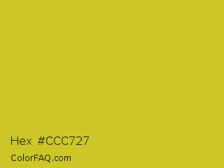 Hex #ccc727 Color is a normal yellow color and the nearest color is Key Lime Pie #bfc921. Hex code #ccc727 and RGB value is rgb(204,199,39). In RGB color space, this color is composed of 80% red, 78% green, 15% blue, In CMYK color space, this color is composed of 0% cyan, 2% magenta, 81% yellow , 20% black , In HSL color space, this color has a hue angle of 58° , 68% saturation and 48% lightness.