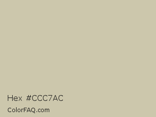 Hex #ccc7ac Color is a light yellow color and the nearest color is Thistle Green #cccaa8. Hex code #ccc7ac and RGB value is rgb(204,199,172). In RGB color space, this color is composed of 80% red, 78% green, 67% blue, In CMYK color space, this color is composed of 0% cyan, 2% magenta, 16% yellow , 20% black , In HSL color space, this color has a hue angle of 51° , 24% saturation and 74% lightness.