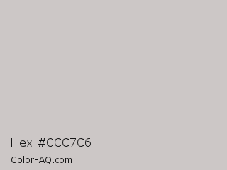 Hex #ccc7c6 Color is a light red color and the nearest color is Pastel Gray #cfcfc4. Hex code #ccc7c6 and RGB value is rgb(204,199,198). In RGB color space, this color is composed of 80% red, 78% green, 78% blue, In CMYK color space, this color is composed of 0% cyan, 2% magenta, 3% yellow , 20% black , In HSL color space, this color has a hue angle of 10° , 6% saturation and 79% lightness.
