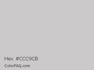 Hex #ccc9cb Color is a light magenta color and the nearest color is Pastel Gray #cfcfc4. Hex code #ccc9cb and RGB value is rgb(204,201,203). In RGB color space, this color is composed of 80% red, 79% green, 80% blue, In CMYK color space, this color is composed of 0% cyan, 1% magenta, 0% yellow , 20% black , In HSL color space, this color has a hue angle of 320° , 3% saturation and 79% lightness.