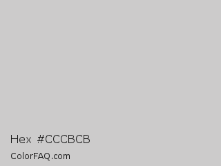 Hex #cccbcb Color is a light red color and the nearest color is Pastel Gray #cfcfc4. Hex code #cccbcb and RGB value is rgb(204,203,203). In RGB color space, this color is composed of 80% red, 80% green, 80% blue, In CMYK color space, this color is composed of 0% cyan, 0% magenta, 0% yellow , 20% black , In HSL color space, this color has a hue angle of 0° , 1% saturation and 80% lightness.