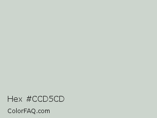 Hex #ccd5cd Color is a very light green color and the nearest color is Celeste #d1d2ca. Hex code #ccd5cd and RGB value is rgb(204,213,205). In RGB color space, this color is composed of 80% red, 84% green, 80% blue, In CMYK color space, this color is composed of 4% cyan, 0% magenta, 4% yellow , 16% black , In HSL color space, this color has a hue angle of 127° , 10% saturation and 82% lightness.
