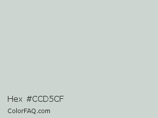 Hex #ccd5cf Color is a very light green color and the nearest color is Conch #c9d9d2. Hex code #ccd5cf and RGB value is rgb(204,213,207). In RGB color space, this color is composed of 80% red, 84% green, 81% blue, In CMYK color space, this color is composed of 4% cyan, 0% magenta, 3% yellow , 16% black , In HSL color space, this color has a hue angle of 140° , 10% saturation and 82% lightness.