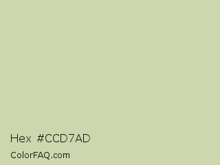 Hex #ccd7ad Color is a light lime color and the nearest color is Green Mist #cbd3b0. Hex code #ccd7ad and RGB value is rgb(204,215,173). In RGB color space, this color is composed of 80% red, 84% green, 68% blue, In CMYK color space, this color is composed of 5% cyan, 0% magenta, 20% yellow , 16% black , In HSL color space, this color has a hue angle of 76° , 34% saturation and 76% lightness.