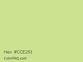 Hex #cce291 Color is a light lime color and the nearest color is Deco #d2da97. Hex code #cce291 and RGB value is rgb(204,226,145). In RGB color space, this color is composed of 80% red, 89% green, 57% blue, In CMYK color space, this color is composed of 10% cyan, 0% magenta, 36% yellow , 11% black , In HSL color space, this color has a hue angle of 76° , 58% saturation and 73% lightness.