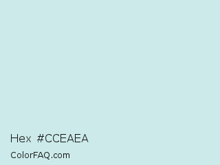 Hex #cceaea Color is a very light cyan color and the nearest color is Jagged Ice #c2e8e5. Hex code #cceaea and RGB value is rgb(204,234,234). In RGB color space, this color is composed of 80% red, 92% green, 92% blue, In CMYK color space, this color is composed of 13% cyan, 0% magenta, 0% yellow , 8% black , In HSL color space, this color has a hue angle of 180° , 42% saturation and 86% lightness.