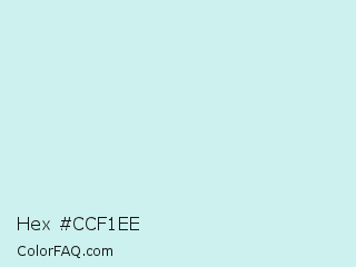 Hex #ccf1ee Color is a very light cyan color and the nearest color is Mint Tulip #c4f4eb. Hex code #ccf1ee and RGB value is rgb(204,241,238). In RGB color space, this color is composed of 80% red, 95% green, 93% blue, In CMYK color space, this color is composed of 15% cyan, 0% magenta, 1% yellow , 5% black , In HSL color space, this color has a hue angle of 175° , 57% saturation and 87% lightness.