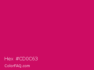 Hex #cd0c63 Color is a normal rose color and the nearest color is Dogwood Rose #d71868. Hex code #cd0c63 and RGB value is rgb(205,12,99). In RGB color space, this color is composed of 80% red, 5% green, 39% blue, In CMYK color space, this color is composed of 0% cyan, 94% magenta, 52% yellow , 20% black , In HSL color space, this color has a hue angle of 333° , 89% saturation and 43% lightness.