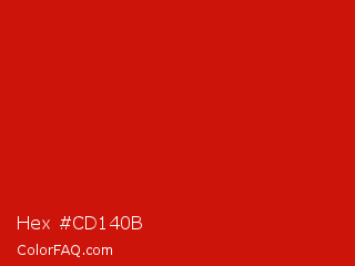 Hex #cd140b Color is a normal red color and the nearest color is Venetian Red #c80815. Hex code #cd140b and RGB value is rgb(205,20,11). In RGB color space, this color is composed of 80% red, 8% green, 4% blue, In CMYK color space, this color is composed of 0% cyan, 90% magenta, 95% yellow , 20% black , In HSL color space, this color has a hue angle of 3° , 90% saturation and 42% lightness.