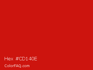 Hex #cd140e Color is a normal red color and the nearest color is Venetian Red #c80815. Hex code #cd140e and RGB value is rgb(205,20,14). In RGB color space, this color is composed of 80% red, 8% green, 5% blue, In CMYK color space, this color is composed of 0% cyan, 90% magenta, 93% yellow , 20% black , In HSL color space, this color has a hue angle of 2° , 87% saturation and 43% lightness.