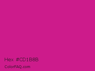 Hex #cd1b8b Color is a normal magenta color and the nearest color is Red Violet #c71585. Hex code #cd1b8b and RGB value is rgb(205,27,139). In RGB color space, this color is composed of 80% red, 11% green, 55% blue, In CMYK color space, this color is composed of 0% cyan, 87% magenta, 32% yellow , 20% black , In HSL color space, this color has a hue angle of 322° , 77% saturation and 45% lightness.