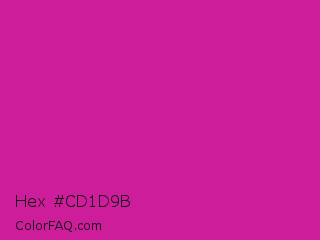 Hex #cd1d9b Color is a normal magenta color and the nearest color is Royal Fuchsia #ca2c92. Hex code #cd1d9b and RGB value is rgb(205,29,155). In RGB color space, this color is composed of 80% red, 11% green, 61% blue, In CMYK color space, this color is composed of 0% cyan, 86% magenta, 24% yellow , 20% black , In HSL color space, this color has a hue angle of 317° , 75% saturation and 46% lightness.