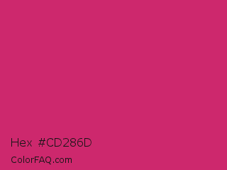 Hex #cd286d Color is a normal rose color and the nearest color is Telemagenta #cf3476. Hex code #cd286d and RGB value is rgb(205,40,109). In RGB color space, this color is composed of 80% red, 16% green, 43% blue, In CMYK color space, this color is composed of 0% cyan, 80% magenta, 47% yellow , 20% black , In HSL color space, this color has a hue angle of 335° , 67% saturation and 48% lightness.