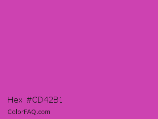 Hex #cd42b1 Color is a normal magenta color and the nearest color is Byzantine #bd33a4. Hex code #cd42b1 and RGB value is rgb(205,66,177). In RGB color space, this color is composed of 80% red, 26% green, 69% blue, In CMYK color space, this color is composed of 0% cyan, 68% magenta, 14% yellow , 20% black , In HSL color space, this color has a hue angle of 312° , 58% saturation and 53% lightness.