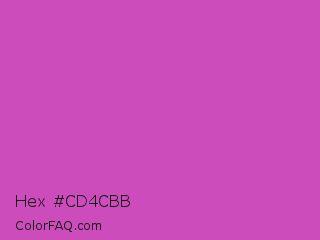 Hex #cd4cbb Color is a normal magenta color and the nearest color is Fuchsia Pink #c154c1. Hex code #cd4cbb and RGB value is rgb(205,76,187). In RGB color space, this color is composed of 80% red, 30% green, 73% blue, In CMYK color space, this color is composed of 0% cyan, 63% magenta, 9% yellow , 20% black , In HSL color space, this color has a hue angle of 308° , 56% saturation and 55% lightness.