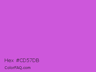 Hex #cd57db Color is a normal magenta color and the nearest color is Medium Orchid #ba55d3. Hex code #cd57db and RGB value is rgb(205,87,219). In RGB color space, this color is composed of 80% red, 34% green, 86% blue, In CMYK color space, this color is composed of 6% cyan, 60% magenta, 0% yellow , 14% black , In HSL color space, this color has a hue angle of 294° , 65% saturation and 60% lightness.