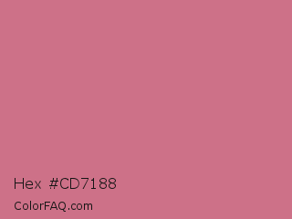 Hex #cd7188 Color is a light red color and the nearest color is Charm #d47494. Hex code #cd7188 and RGB value is rgb(205,113,136). In RGB color space, this color is composed of 80% red, 44% green, 53% blue, In CMYK color space, this color is composed of 0% cyan, 45% magenta, 34% yellow , 20% black , In HSL color space, this color has a hue angle of 345° , 48% saturation and 62% lightness.