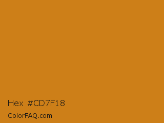 Hex #cd7f18 Color is a normal orange color and the nearest color is Meteor #d07d12. Hex code #cd7f18 and RGB value is rgb(205,127,24). In RGB color space, this color is composed of 80% red, 50% green, 9% blue, In CMYK color space, this color is composed of 0% cyan, 38% magenta, 88% yellow , 20% black , In HSL color space, this color has a hue angle of 34° , 79% saturation and 45% lightness.