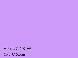 Hex #cd9cfb Color is a light purple color and the nearest color is Pale Violet #cc99ff. Hex code #cd9cfb and RGB value is rgb(205,156,251). In RGB color space, this color is composed of 80% red, 61% green, 98% blue, In CMYK color space, this color is composed of 18% cyan, 38% magenta, 0% yellow , 2% black , In HSL color space, this color has a hue angle of 271° , 92% saturation and 80% lightness.