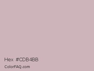 Hex #cdb4bb Color is a light rose color and the nearest color is Cold Turkey #cebaba. Hex code #cdb4bb and RGB value is rgb(205,180,187). In RGB color space, this color is composed of 80% red, 71% green, 73% blue, In CMYK color space, this color is composed of 0% cyan, 12% magenta, 9% yellow , 20% black , In HSL color space, this color has a hue angle of 343° , 20% saturation and 75% lightness.