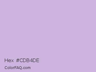 Hex #cdb4de Color is a light purple color and the nearest color is Prelude #d0c0e5. Hex code #cdb4de and RGB value is rgb(205,180,222). In RGB color space, this color is composed of 80% red, 71% green, 87% blue, In CMYK color space, this color is composed of 8% cyan, 19% magenta, 0% yellow , 13% black , In HSL color space, this color has a hue angle of 276° , 39% saturation and 79% lightness.