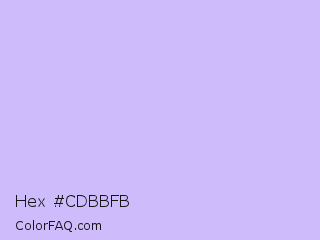 Hex #cdbbfb Color is a very light indigo color and the nearest color is Perfume #d0bef8. Hex code #cdbbfb and RGB value is rgb(205,187,251). In RGB color space, this color is composed of 80% red, 73% green, 98% blue, In CMYK color space, this color is composed of 18% cyan, 25% magenta, 0% yellow , 2% black , In HSL color space, this color has a hue angle of 257° , 89% saturation and 86% lightness.