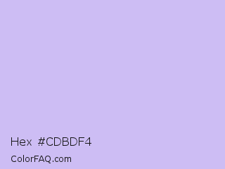 Hex #cdbdf4 Color is a very light indigo color and the nearest color is Perfume #d0bef8. Hex code #cdbdf4 and RGB value is rgb(205,189,244). In RGB color space, this color is composed of 80% red, 74% green, 96% blue, In CMYK color space, this color is composed of 16% cyan, 23% magenta, 0% yellow , 4% black , In HSL color space, this color has a hue angle of 257° , 71% saturation and 85% lightness.