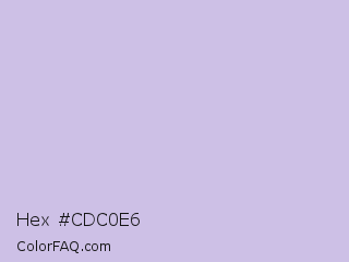 Hex #cdc0e6 Color is a very light violet color and the nearest color is Prelude #d0c0e5. Hex code #cdc0e6 and RGB value is rgb(205,192,230). In RGB color space, this color is composed of 80% red, 75% green, 90% blue, In CMYK color space, this color is composed of 11% cyan, 17% magenta, 0% yellow , 10% black , In HSL color space, this color has a hue angle of 261° , 43% saturation and 83% lightness.
