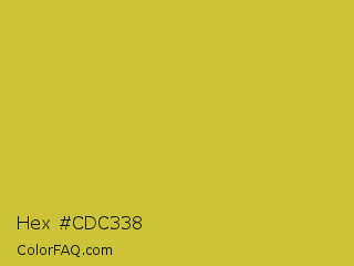 Hex #cdc338 Color is a normal yellow color and the nearest color is Earls Green #c9b93b. Hex code #cdc338 and RGB value is rgb(205,195,56). In RGB color space, this color is composed of 80% red, 76% green, 22% blue, In CMYK color space, this color is composed of 0% cyan, 5% magenta, 73% yellow , 20% black , In HSL color space, this color has a hue angle of 56° , 60% saturation and 51% lightness.