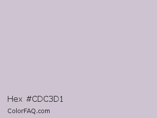 Hex #cdc3d1 Color is a light purple color and the nearest color is Lavender Gray #c4c3d0. Hex code #cdc3d1 and RGB value is rgb(205,195,209). In RGB color space, this color is composed of 80% red, 76% green, 82% blue, In CMYK color space, this color is composed of 2% cyan, 7% magenta, 0% yellow , 18% black , In HSL color space, this color has a hue angle of 283° , 13% saturation and 79% lightness.