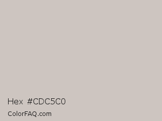 Hex #cdc5c0 Color is a light orange color and the nearest color is Cloud #c7c4bf. Hex code #cdc5c0 and RGB value is rgb(205,197,192). In RGB color space, this color is composed of 80% red, 77% green, 75% blue, In CMYK color space, this color is composed of 0% cyan, 4% magenta, 6% yellow , 20% black , In HSL color space, this color has a hue angle of 23° , 12% saturation and 78% lightness.