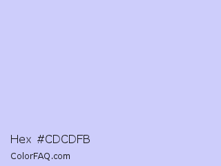 Hex #cdcdfb Color is a very light blue color and the nearest color is Periwinkle #ccccff. Hex code #cdcdfb and RGB value is rgb(205,205,251). In RGB color space, this color is composed of 80% red, 80% green, 98% blue, In CMYK color space, this color is composed of 18% cyan, 18% magenta, 0% yellow , 2% black , In HSL color space, this color has a hue angle of 240° , 85% saturation and 89% lightness.