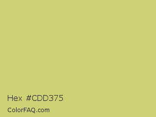 Hex #cdd375 Color is a light yellow color and the nearest color is Yellow Green #c5e17a. Hex code #cdd375 and RGB value is rgb(205,211,117). In RGB color space, this color is composed of 80% red, 83% green, 46% blue, In CMYK color space, this color is composed of 3% cyan, 0% magenta, 45% yellow , 17% black , In HSL color space, this color has a hue angle of 64° , 52% saturation and 64% lightness.