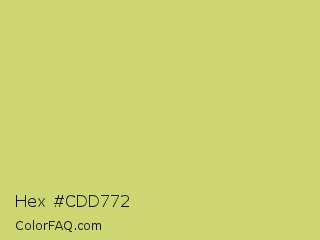 Hex #cdd772 Color is a light yellow color and the nearest color is Yellow Green #c5e17a. Hex code #cdd772 and RGB value is rgb(205,215,114). In RGB color space, this color is composed of 80% red, 84% green, 45% blue, In CMYK color space, this color is composed of 5% cyan, 0% magenta, 47% yellow , 16% black , In HSL color space, this color has a hue angle of 66° , 56% saturation and 65% lightness.