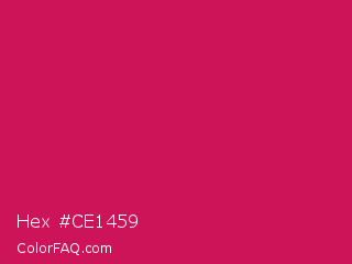 Hex #ce1459 Color is a normal rose color and the nearest color is Debian Red #d70a53. Hex code #ce1459 and RGB value is rgb(206,20,89). In RGB color space, this color is composed of 81% red, 8% green, 35% blue, In CMYK color space, this color is composed of 0% cyan, 90% magenta, 57% yellow , 19% black , In HSL color space, this color has a hue angle of 338° , 82% saturation and 44% lightness.