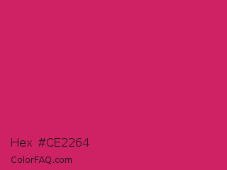 Hex #ce2264 Color is a normal rose color and the nearest color is Dogwood Rose #d71868. Hex code #ce2264 and RGB value is rgb(206,34,100). In RGB color space, this color is composed of 81% red, 13% green, 39% blue, In CMYK color space, this color is composed of 0% cyan, 83% magenta, 51% yellow , 19% black , In HSL color space, this color has a hue angle of 337° , 72% saturation and 47% lightness.