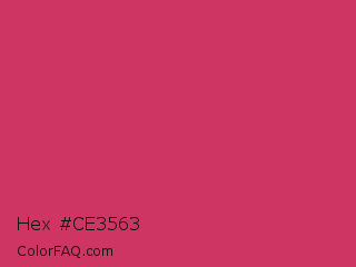 Hex #ce3563 Color is a normal rose color and the nearest color is Cerise Red #de3163. Hex code #ce3563 and RGB value is rgb(206,53,99). In RGB color space, this color is composed of 81% red, 21% green, 39% blue, In CMYK color space, this color is composed of 0% cyan, 74% magenta, 52% yellow , 19% black , In HSL color space, this color has a hue angle of 342° , 61% saturation and 51% lightness.