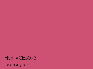 Hex #ce5073 Color is a normal rose color and the nearest color is Ruber #ce4676. Hex code #ce5073 and RGB value is rgb(206,80,115). In RGB color space, this color is composed of 81% red, 31% green, 45% blue, In CMYK color space, this color is composed of 0% cyan, 61% magenta, 44% yellow , 19% black , In HSL color space, this color has a hue angle of 343° , 56% saturation and 56% lightness.