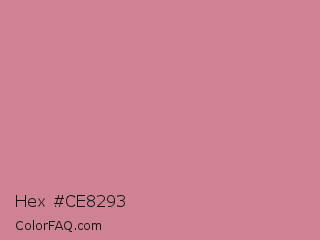 Hex #ce8293 Color is a light red color and the nearest color is Puce #cc8899. Hex code #ce8293 and RGB value is rgb(206,130,147). In RGB color space, this color is composed of 81% red, 51% green, 58% blue, In CMYK color space, this color is composed of 0% cyan, 37% magenta, 29% yellow , 19% black , In HSL color space, this color has a hue angle of 347° , 44% saturation and 66% lightness.
