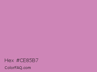 Hex #ce85b7 Color is a light magenta color and the nearest color is Middle Purple #d982b5. Hex code #ce85b7 and RGB value is rgb(206,133,183). In RGB color space, this color is composed of 81% red, 52% green, 72% blue, In CMYK color space, this color is composed of 0% cyan, 35% magenta, 11% yellow , 19% black , In HSL color space, this color has a hue angle of 319° , 43% saturation and 66% lightness.