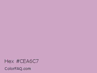 Hex #cea6c7 Color is a light magenta color and the nearest color is Lilac #c8a2c8. Hex code #cea6c7 and RGB value is rgb(206,166,199). In RGB color space, this color is composed of 81% red, 65% green, 78% blue, In CMYK color space, this color is composed of 0% cyan, 19% magenta, 3% yellow , 19% black , In HSL color space, this color has a hue angle of 311° , 29% saturation and 73% lightness.