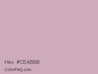 Hex #ceabbb Color is a light rose color and the nearest color is Lily #c8aabf. Hex code #ceabbb and RGB value is rgb(206,171,187). In RGB color space, this color is composed of 81% red, 67% green, 73% blue, In CMYK color space, this color is composed of 0% cyan, 17% magenta, 9% yellow , 19% black , In HSL color space, this color has a hue angle of 333° , 26% saturation and 74% lightness.