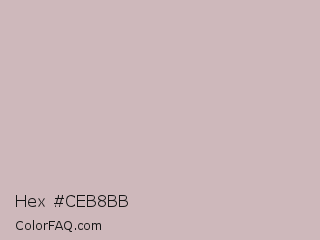 Hex #ceb8bb Color is a light red color and the nearest color is Cold Turkey #cebaba. Hex code #ceb8bb and RGB value is rgb(206,184,187). In RGB color space, this color is composed of 81% red, 72% green, 73% blue, In CMYK color space, this color is composed of 0% cyan, 11% magenta, 9% yellow , 19% black , In HSL color space, this color has a hue angle of 352° , 18% saturation and 76% lightness.