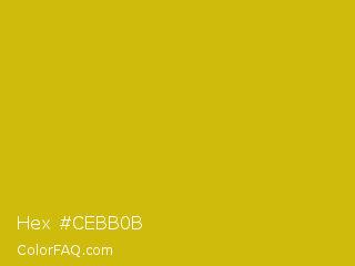 Hex #cebb0b Color is a normal yellow color and the nearest color is Galliano #dcb20c. Hex code #cebb0b and RGB value is rgb(206,187,11). In RGB color space, this color is composed of 81% red, 73% green, 4% blue, In CMYK color space, this color is composed of 0% cyan, 9% magenta, 95% yellow , 19% black , In HSL color space, this color has a hue angle of 54° , 90% saturation and 43% lightness.